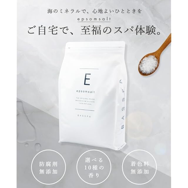 商品名:BASSPA エプソムソルト 選べる10種類の香り 硫酸マグネシウム 入浴剤 計量スプーン付き (3kg, ホワイトムスク)