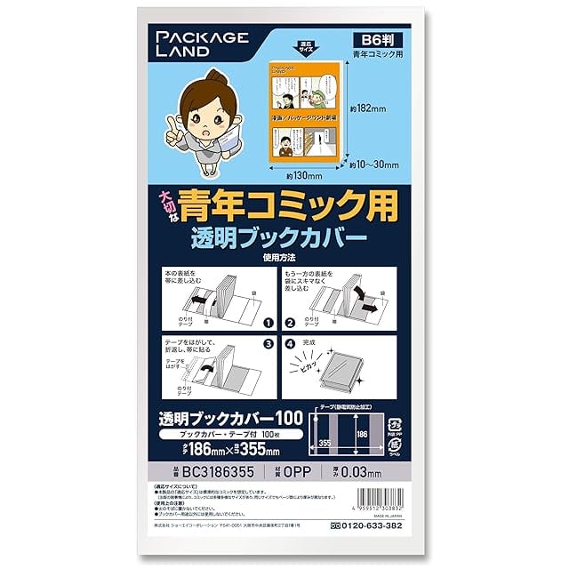 商品名:【パッケージランド】大切な青年コミック用透明ブックカバー/100枚/OP30 186×355