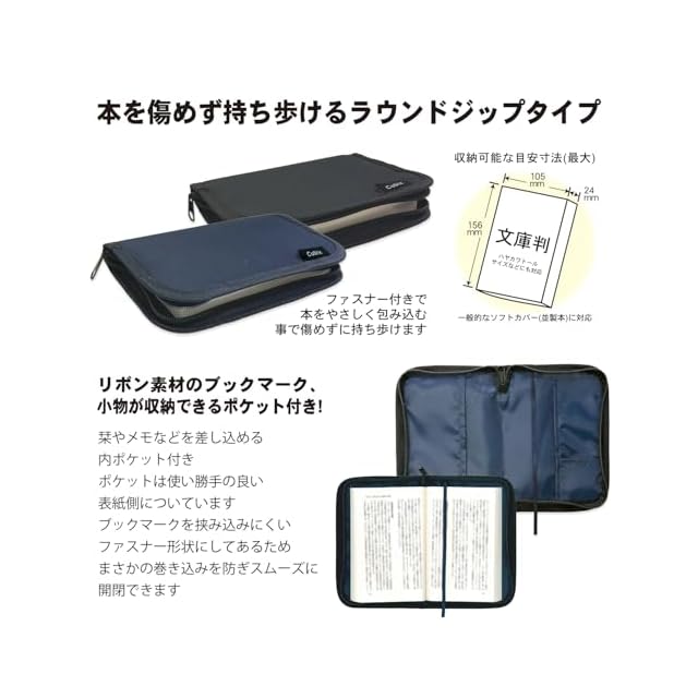 本を傷めず持ち歩ける、ファスナー付きのラウンドジップタイプのブックカバー