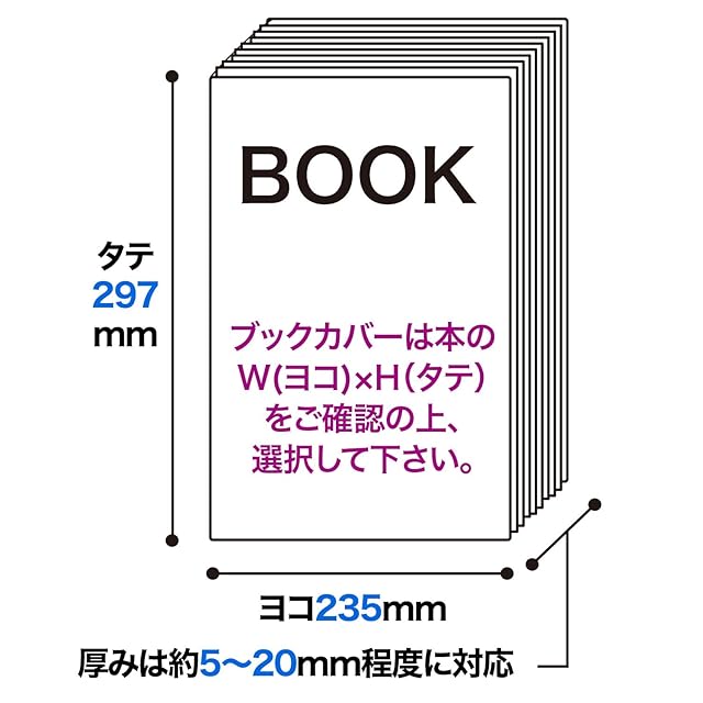 【サイズ】W570xH300mm 40ミクロン厚 テープ付。A4ワイド用サイズ(235x297ミリ程度)の本に装着可能です。