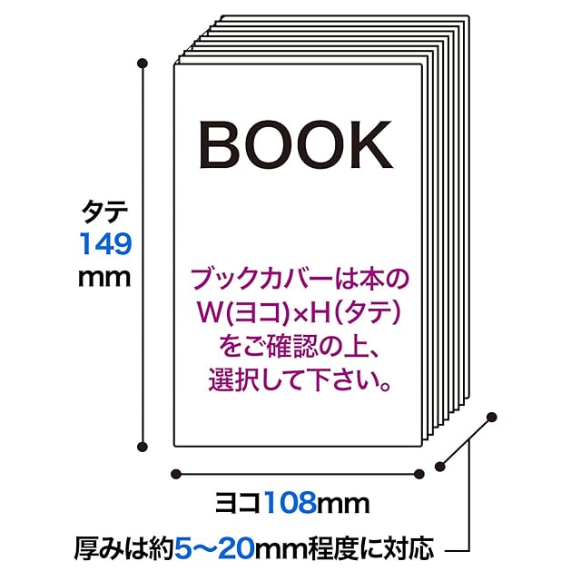 ■”コミック侍”ブランドのライトノベル用の40ミクロンプレミアム仕様の透明ブックカバーです。・フィルムの厚みは厚口の40ミクロンタイプで、標準タイプよりもコシがあり高級感を感じる厚みです。・徹底的にコストを見直し品質を磨いたオリジナルブックカバー。<br>・パッケージに装着方法や本の適合サイズを分かりやすく表記。<br>・限りなくクリアな透明度のOPPフィルムは、しわがつきにくく上品な光沢があり、本の表紙に耐水性と防汚性をプラスできます。<br>・焼却してもダイオキシン等の有毒ガスが発生しない、環境に優しい素材です。<br><br>■こんな場面にオススメです<br>・図書館やレンタルコミック店に<br>・インターネットカフェや飲食店に<br>・個人のコレクション用に<br>・美容院や待合室に<br><br>■対応書籍横:108mm 縦:149mm前後 厚み:5~20mm程度のライトノベルに対応しています <br>【ぴったり】<br>・PHP文庫(PHP)<br>・WAVE文庫(WAVE出版)<br>・地蔵さんとちょっと変わった日本恋話(電撃文庫/アスキー・メディアワークス)<br>・改訂徒然草(角川ソフィア文庫/角川書店)<br>・実践英文快読術(岩波現代文庫/岩波書店)<br>・メイちゃんの執事s(コバルト文庫/集英社)<br>・黄金色の黎明(集英社スーパーファンタジー文庫/集英社)<br>・きよしこ(新潮文庫/新潮社)<br>・尾木ママの子どもを伸ばす言葉ダメにする言葉(成美文庫/成美堂出版)<br>・中経の文庫(中経出版)<br>・徳間文庫(徳間書店)<br>・日経ビジネス人文庫(日本経済新聞社)<br>・くじけないで[文庫版](飛鳥新社) <br><br>【タテ2mm程余裕あり】<br>・蒼黒の追憶(ファミ通文庫/エンターブレイン)<br>・お嫁においで(ダリア文庫/フロンティワークス)<br>・ペンギンハイウェイ(角川文庫/角川書店)<br>・蝸牛考(岩波文庫/岩波書店)<br>・ステップアップ翻訳講座(ちくま学芸文庫/筑摩書房)<br>・まちがったっていいじゃないか(ちくま文庫/筑摩書房)・死者の声なき声(創元社推理文庫/東京創元社)・故きを温ね、新しきを知る(二見シャレード文庫/二見書房)<br><br>【タテ3mm程余裕あり】<br>・月のマトリクス(講談社X文庫ホワイトハート/講談社)<br>・完訳クラッシック赤毛のアン アンをめぐる人々(講談社文庫/講談社)・口入れ屋お千恵繁盛記(富士見新時代小説/富士見書房)<br><br>※GA文庫のGAノベルは入りません。<br>※実際に装着して確認しておりますが、急な書籍のサイズ変更もあるため、サイズの適合をするものではございません。あくまでも参考値のため、実際はご自身の責任でお確かめ下さい。<br>※密着テープは接着後、2,3日ではがれにくくなります。粘着力が強いため、開封時に破れることがあります。