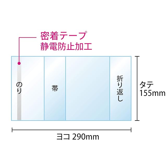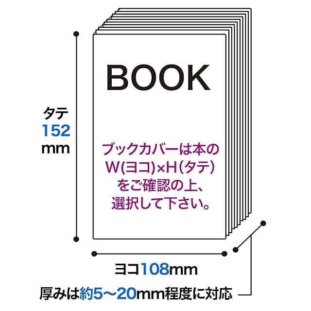 【サイズ】W290xH155mm 30ミクロン厚 テープ付。文庫本(108x152ミリ程度)の本に装着可能です。