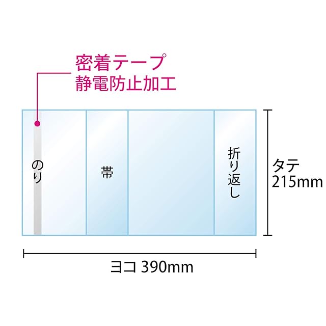 【サイズ】W390xH215mm 30ミクロン厚 テープ付。実用書など(150x212ミリ程度)の本に装着可能です。