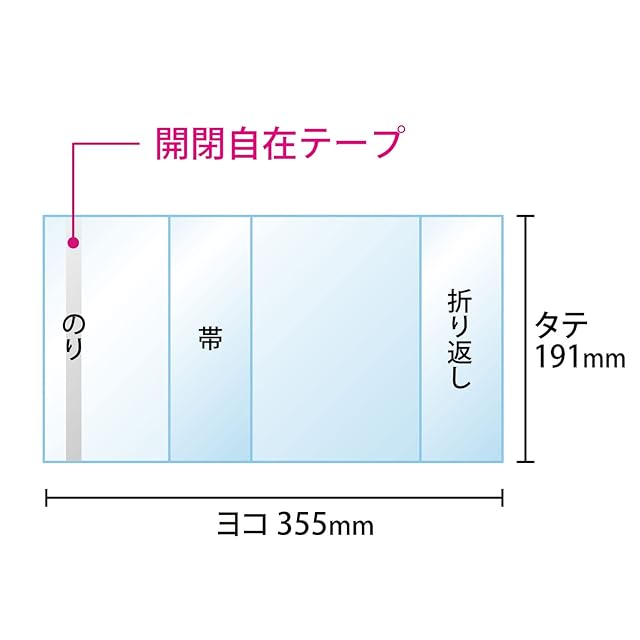 【サイズ】W355xH191mm 30ミクロン厚 開閉自在テープ付。四六判(130x188ミリ程度)の本に装着可能です。