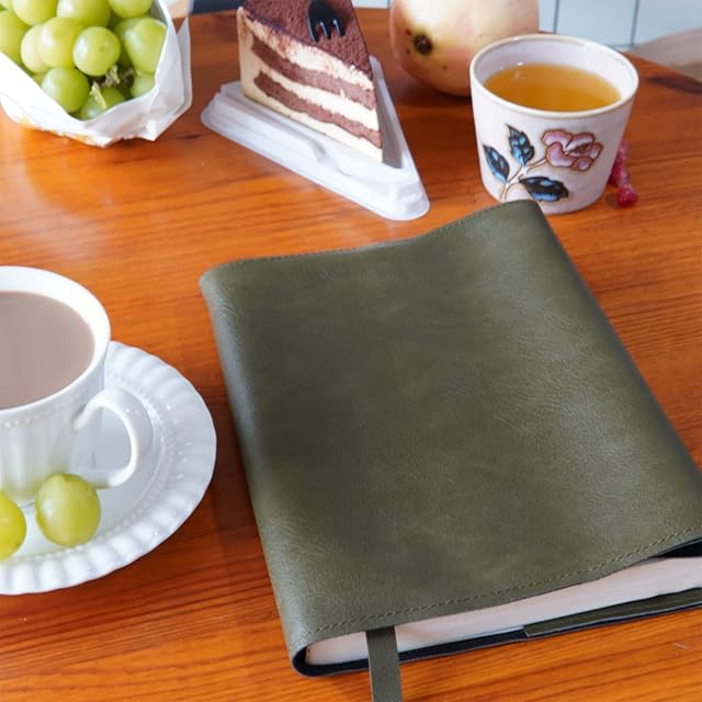 商品名:gogesブックカバー b5 防水レザー ― 上質感のある合皮の高級本カバー サイズ調整可能 厚い本対応可 しおり付き 軽量 おしゃれ(b5 カーキ)