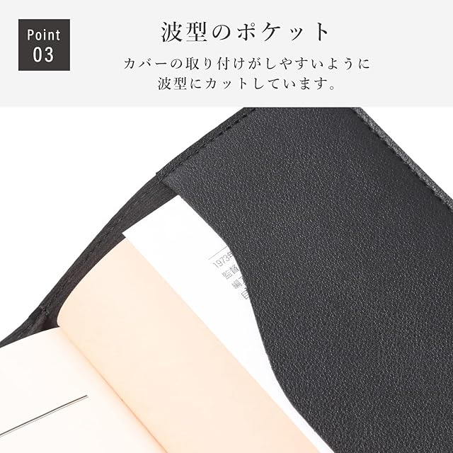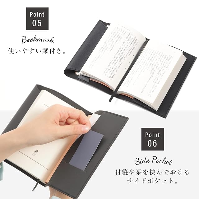 ブックカバー 厚み調整可 栞付き 合成レザー (ブラック, B6並製本)