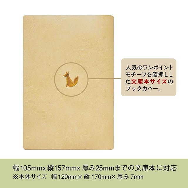【その他】人気のワンポイントモチーフを箔押しした文庫本サイズのブックカバー。幅105mmx縦157mmx厚み25mmまでの文庫本に対応しています。