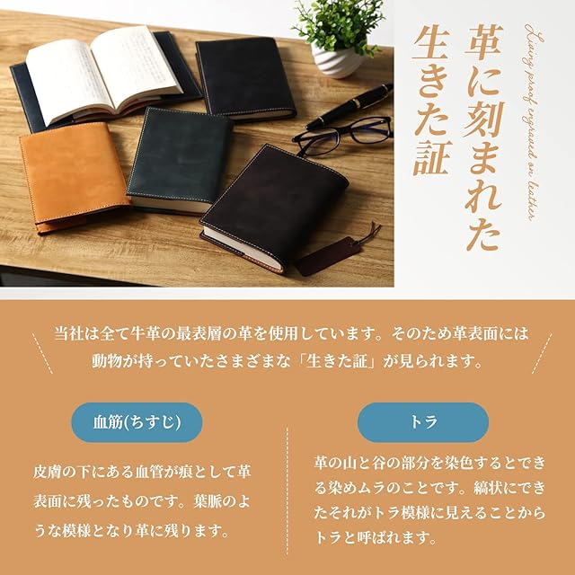 ️【経年変化を楽しむ】ブックカバーの牛革表面が摩耗することで、革の色調が変わり、革表面に豊かで多彩な光沢が生まれます。そして肌からの油もまた革に美しい光沢を加える材料になります。