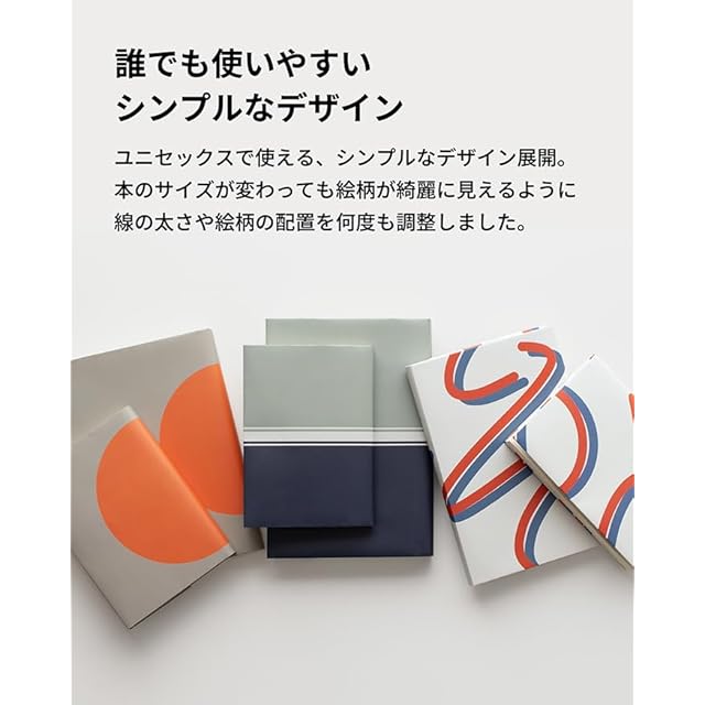 誰でも使いやすい、シンプルなデザイン。ユニセックスで使える、シンプルなデザイン展開。本のサイズが変わっても絵柄が綺麗に見えるように線の太さや絵柄の配置を何度も調整しました。