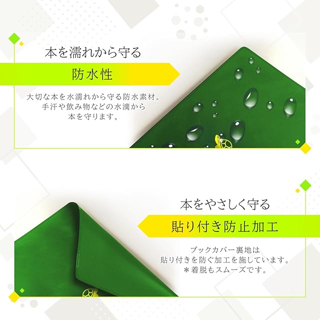 【ブックカバーの効果2】防水性があります。大切な本を水、キズ、汚れから守ります。*ただし、側面などのカバーの掛からない部分への水濡れは防げません。ご注意ください。