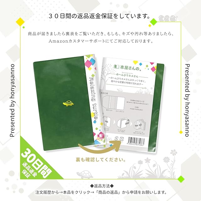 商品名:本屋さんの。 ブックカバー 文庫本 サイズ [厚さ調整可] 日本製 HB02 の~んびりカメさん