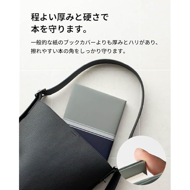 程よい厚みと硬さで、本を守ります。一般的な紙のブックカバーよりも厚みとハリがあり、擦れやすい本の角をしっかり守ります。