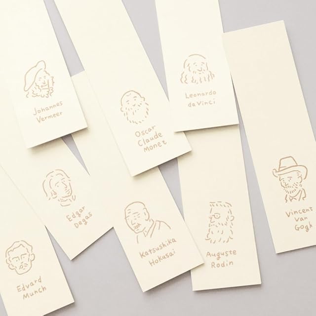 【その他】文庫本サイズのブックカバー。表紙には誰もが知っている有名な美術作品をラフなタッチでアレンジで。付属のしおりにはそれぞれの作者が描かれています。幅105mmx縦157mmx厚み25mmまでの文庫本に対応しています。