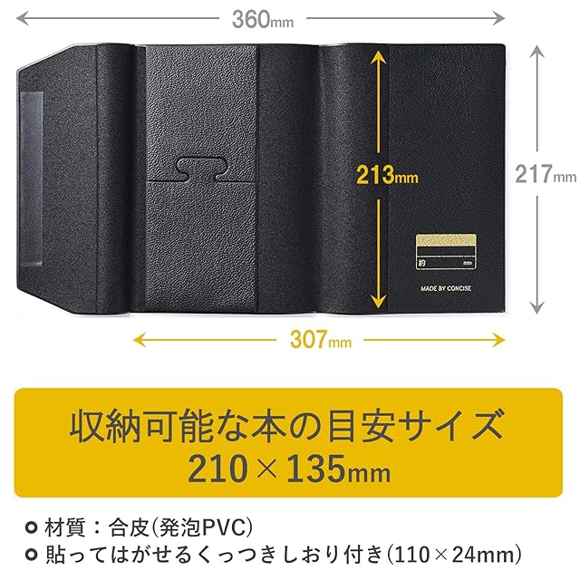 コンサイス ブックカバー 皮革調 No.10 A5 変形 黒 324010