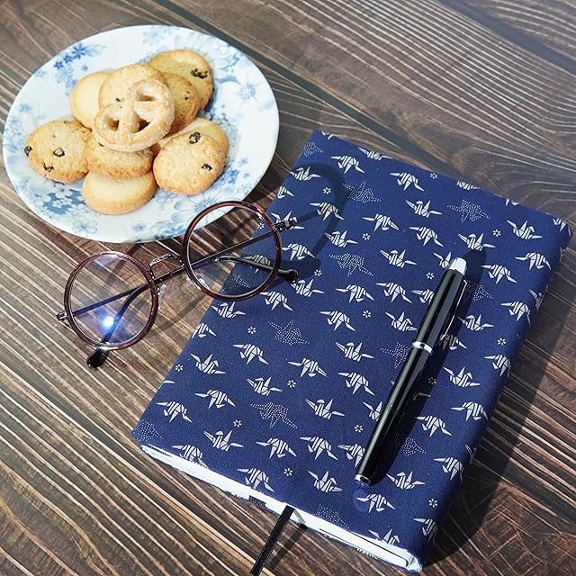 gogesブックカバー裏地防水加工 a5サイズ 布製 ― 高級本カバー サイズ調整可能 厚め対応可 しおり付き 軽量 おしゃれ(a5 千羽鶴)