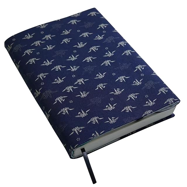 gogesブックカバー裏地防水加工 B6上製本サイズ 布製 ― 高級本カバー サイズ調整可能 厚め対応可 しおり付き 軽量 おしゃれ(b6上 千羽鶴)
