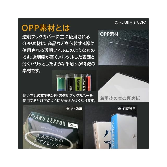 商品名:REMITA 透明ブックカバー A4強用(例:楽譜・美術書など) 15枚 OPP素材 BC15A4HOP