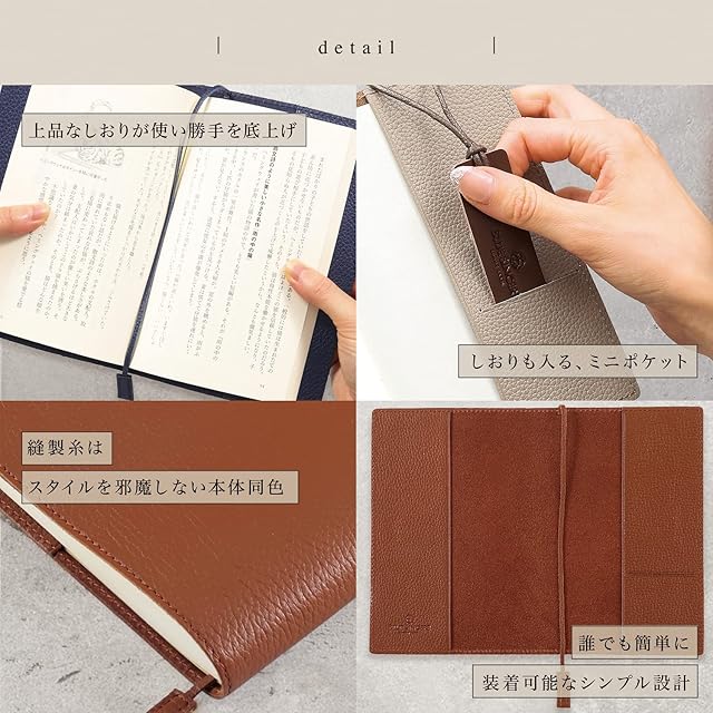 ✅【 定番 文庫サイズ ブックカバーが遂に登場!! 】 大切な本を汚れから守り、上質な時間に格上げしてくれるブックカバーです。ブックカバーとしての使用はもちろん、コンパクトなノートや手帳などのカバーとしてもお使いいただけます。栞がついているため、「紙の本はあまり読まないけど、手帳は使う」という方にもオススメいたします。手帳やノート、メモ帳などを開くとき、最後にどのページを開いたか分からなくなってしまうことはありませんか?そんな時こそしおりの出番。しおりは新書本以外のものを入れる際にも大活躍するのです。