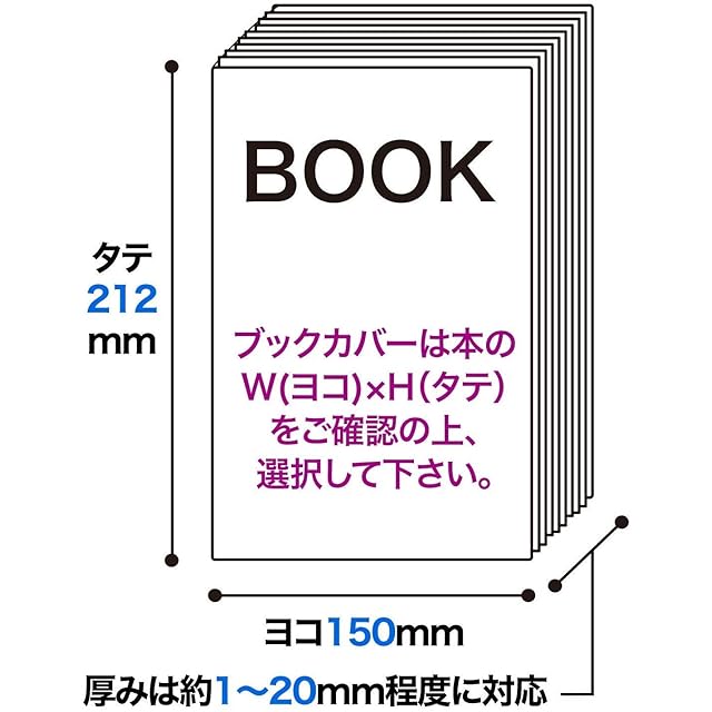 【サイズ】W390xH215mm 40ミクロン厚 テープ付。150x212ミリ程度のA5サイズの本に装着可能です。