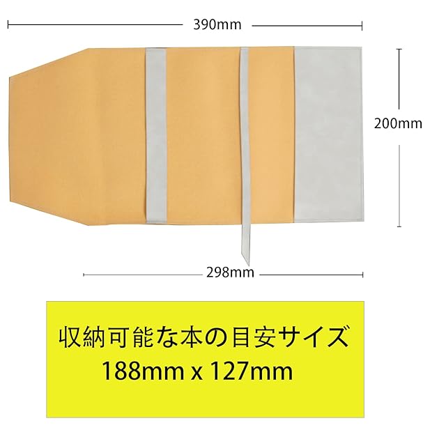 片面のサイズは調整可能な仕様で、600ぺージ(本の厚さは約30mm)まで、収納できます。収納可能な本の目安サイズは188mm x 127mmです。