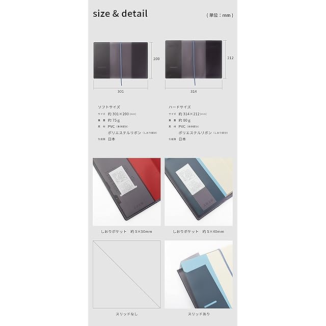 ソフトもハードもぴったり。四六判は2種類のサイズをご用意しました。ハードカバーはスリットが入っているから、着脱も簡単。