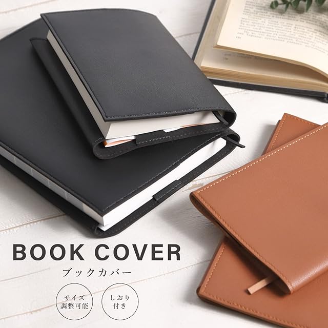 ブックカバー 厚み調整可 栞付き 合成レザー (ブラウン, B5)