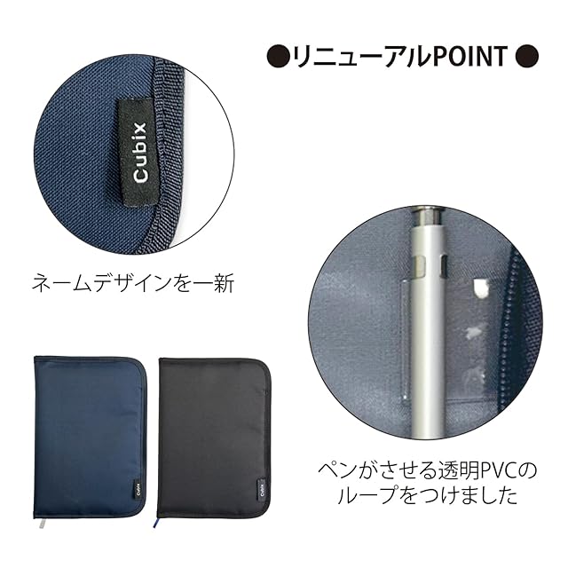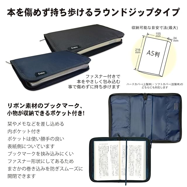 商品名:エムプラン ブックカバー キュービックス ラウンドジップN A5判サイズ ネイビー 114042-08-145