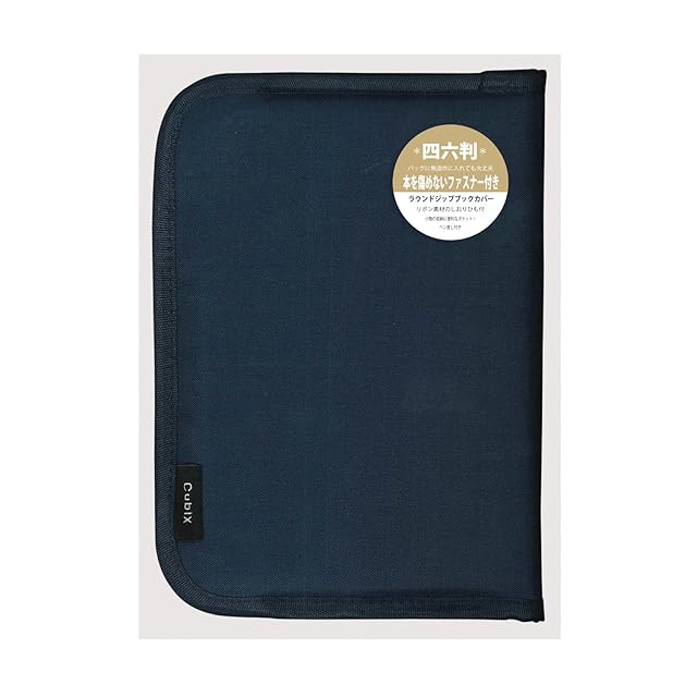 商品名:エムプラン ブックカバー キュービックス ラウンドジップN 四六判サイズ ネイビー 114041-08-135