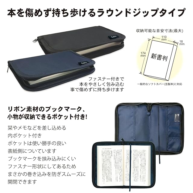 本を傷めず持ち歩ける、ファスナー付きのラウンドジップタイプのブックカバー