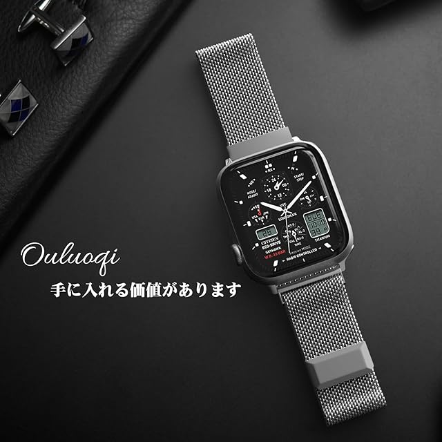 商品名:[OULUOQI] アップルウォッチ用のバンド コンパチブル 49mm 46mm 45mm 44mm 42mm 41mm 40mm 38mm ステンレス ベルト 長さ調節 男女兼用 マグネット 留め金 メッシュ 通気 Watch Series 11/10/9/8/7/6/5/4/SE3/SE2/Ultra3 に対応