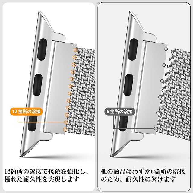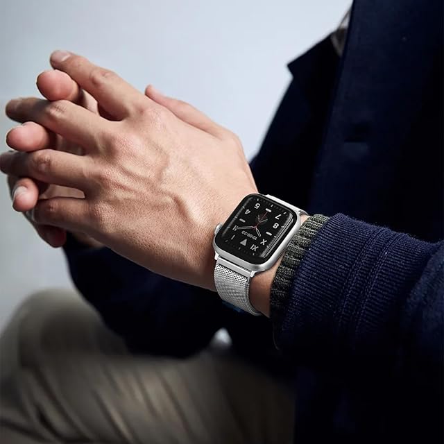 コンパチブル Series Ultra2/Ultra/SE2/SE/9/8/6/5/4/3/2/1 シリーズに対応可能。49mm/45mm/44mm/42mm/41mm/40mm/38mm のサイズに対応できます。高級なステンレス鋼で製造されています。精巧な磨きが施され、耐久性とエレガンスを兼ね備えています。おしゃれで洗練されたデザインは、家庭、ビジネス、休暇、スポーツなど、あらゆる場面で活躍し、違和感なくフィットします。独自のスクエア磁気バックルを採用し、強力な吸引力でしっかりと装着された状態を維持します。そのため、脱落の心配はありません。バンドのデザインは通気性を考慮しており、メッシュ構造が手首周りの通気性を向上させ、汗をかく季節でも蒸れずに快適にご使用いただけます。工具不要で簡単に取り付けられます。特設の磁気バックルで、お客様の手首に合わせて自由に調整できます。どんな手首のサイズにもピッタリフィットし、心地よい装着感をお楽しみいただけます。