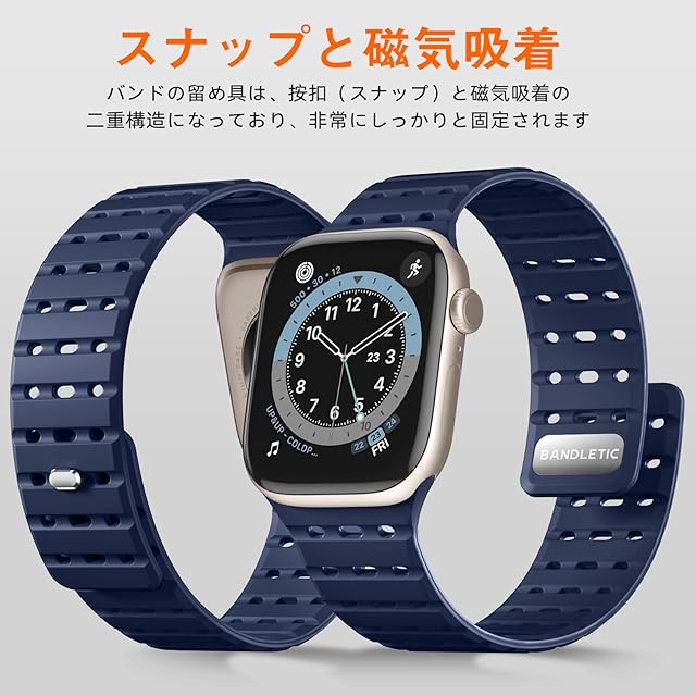 商品名:[Bandletic] アップルウォッチ用の バンド シリコン マグネット - 夏 蒸れない スポーツバンド 38mm 40mm 41mm 42mm(Series10/11) 通気性 防汗 軽量 2色デザイン 交換バンド SE3/SE2/Series11/10/9/8/7/6/5/4/3/2/1