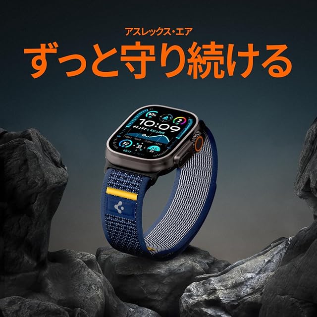 Spigen Apple Watch バンド 49/46/45/44mm【簡単でしっかり装着】Apple Watch Ultra3/Ultra2/Ultra/11/10/9/8/7/6/5/4/SE3/SE2/SE 対応 ストラップ ファブリック素材 通気性 アスレックス・エア AMP09036(アクティブ・ネイビー)