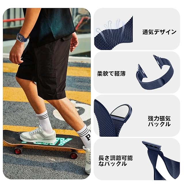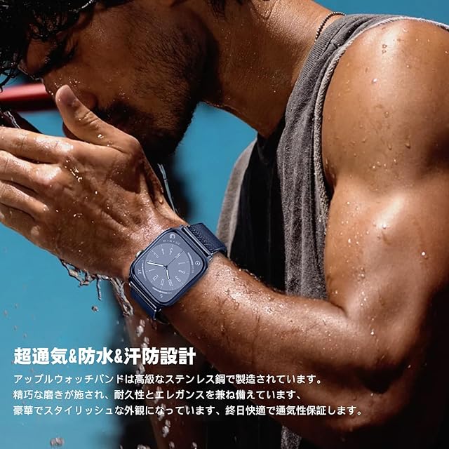 【優れた通気性】アップルウォッチ ベルトのデザインは通気性を考慮しており、メッシュ構造が手首周りの通気性を向上させ、汗をかく季節でも蒸れずに快適にご使用いただけます。着用時に優れた通気性を持つ、オフィスやジムでの使用に関わらず、手首のドライさと快適さを保つことができます。