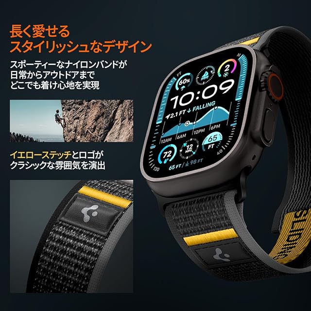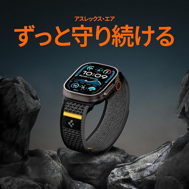 Spigen Apple Watch バンド 49/46/45/44mm【簡単でしっかり装着】Apple Watch Ultra3/Ultra2/Ultra/11/10/9/8/7/6/5/4/SE3/SE2/SE 対応 ストラップ ファブリック素材 通気性 アスレックス・エア AMP09033(アクティブ・ブラック)
