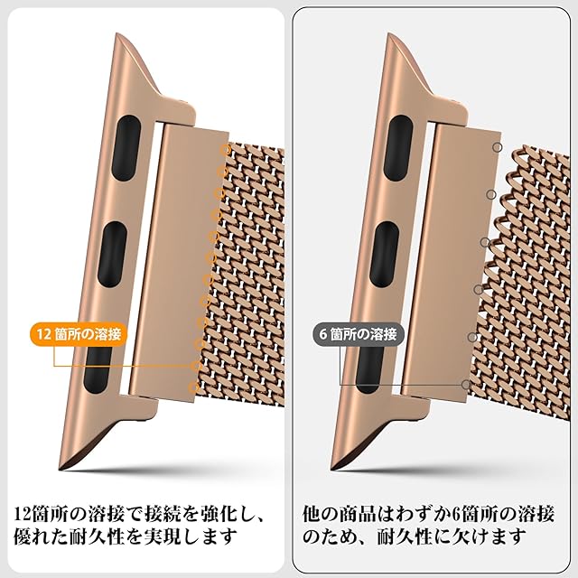 コンパチブル Series Ultra2/Ultra/SE2/SE/9/8/6/5/4/3/2/1 シリーズに対応可能。49mm/45mm/44mm/42mm/41mm/40mm/38mm のサイズに対応できます。高級なステンレス鋼で製造されています。精巧な磨きが施され、耐久性とエレガンスを兼ね備えています。おしゃれで洗練されたデザインは、家庭、ビジネス、休暇、スポーツなど、あらゆる場面で活躍し、違和感なくフィットします。独自のスクエア磁気バックルを採用し、強力な吸引力でしっかりと装着された状態を維持します。そのため、脱落の心配はありません。バンドのデザインは通気性を考慮しており、メッシュ構造が手首周りの通気性を向上させ、汗をかく季節でも蒸れずに快適にご使用いただけます。工具不要で簡単に取り付けられます。特設の磁気バックルで、お客様の手首に合わせて自由に調整できます。どんな手首のサイズにもピッタリフィットし、心地よい装着感をお楽しみいただけます。