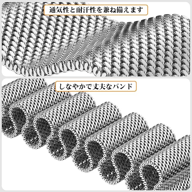 【良い通気性】独自のスクエア磁気バックルを採用し、強力な吸引力でしっかりと装着された状態を維持します。そのため、脱落の心配はありません。バンドのデザインは通気性を考慮しており、メッシュ構造が手首周りの通気性を向上させ、汗をかく季節でも蒸れずに快適にご使用いただけます。