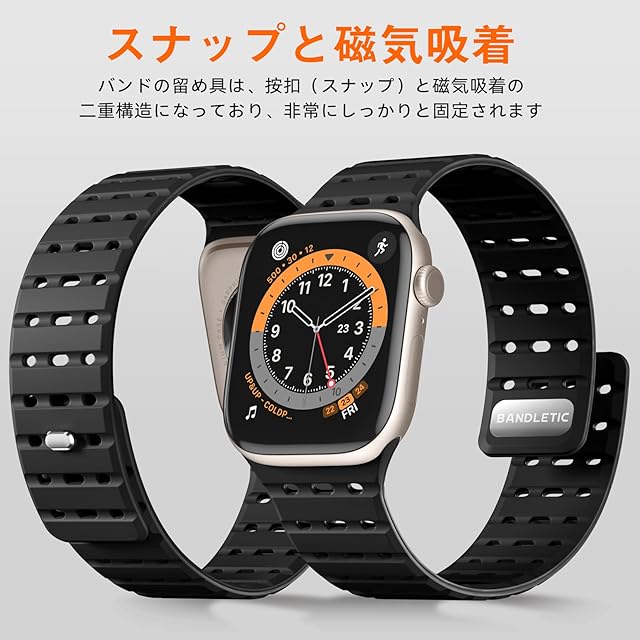 商品名:[Bandletic] アップルウォッチ用の バンド シリコン マグネット - 夏 蒸れない スポーツバンド 38mm 40mm 41mm 42mm(Series10/11) 通気性 防汗 軽量 2色デザイン 交換バンド SE3/SE2/Series11/10/9/8/7/6/5/4/3/2/1