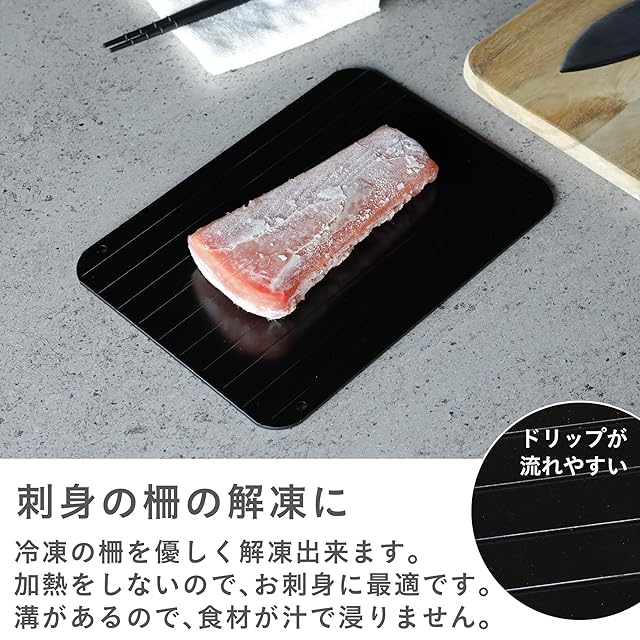 凍った食材をプレートに乗せるだけで簡単に解凍できる「atomico(アトミコ)解凍プレート」熱伝導率の高いアルミ素材で、食材の冷気を吸収・放熱することで素早く解凍!
