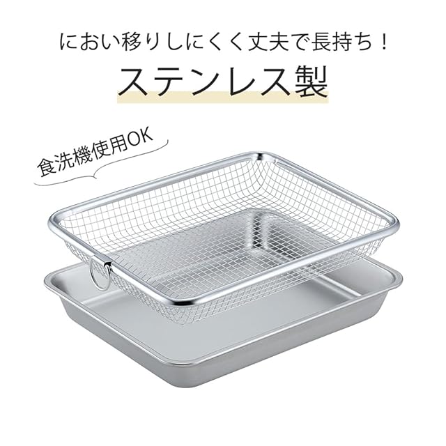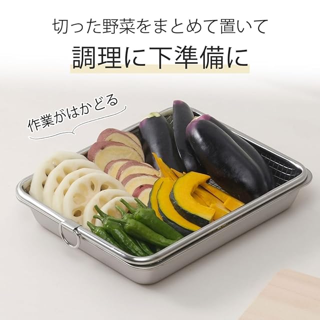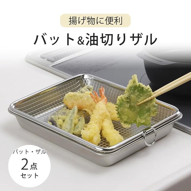 下村企販 揚げ物 バット ザル セット 【日本製】 食洗機対応 トレー アミ付き 天ぷら から揚げ 水切り 野菜水洗い 料理 角型 ステンレス 燕三条 44114 角型