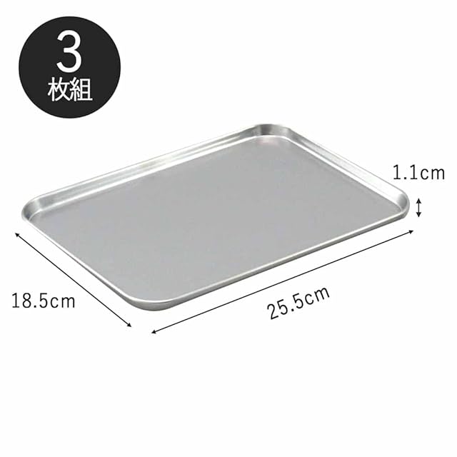 下村企販 トレー 下ごしらえ浅型バット 3枚 【日本製】 18.5×25.5cm 食洗機対応 小分け 料理 アウトドア セット ステンレス 燕三条 34625