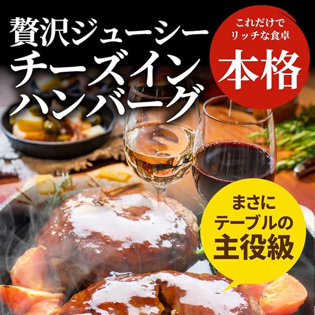 【商品特徴】チーズインハンバーグはの味の一番の魅せ所「とろけるチーズ」。ハンバーグから溢れるチーズのクリーミーさが口いっぱいに広がります。 チーズの風味は濃密で豊か。チーズはとろりと溶け、食べる瞬間に溢れ出す美しい光景が堪能できます。焼きたてハンバーグがレンジ加熱で簡単に食べられます!レンジで簡単に美味しい専門店の味を味わえる自信の逸品です。