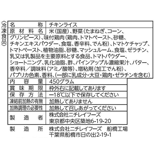 商品名:[冷凍] ニチレイ チキンライス 450g×6袋