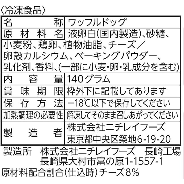商品名:[冷凍] ニチレイ チーズワッフル 4個140g×6袋