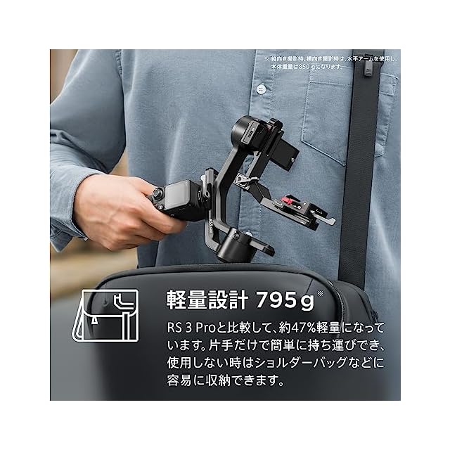 ✅[795g軽量設計&優れた携帯性] - RS 3 Miniは、どこにでも持ち出せる超コンパクトなカメラスタビライザー。重量はわずか795g(縦向き撮影時)で、RS 3 Miniは長時間撮影でも疲れを感じずに撮影できます。[1]