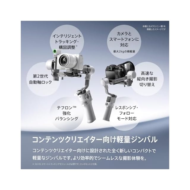 DJI RS 4 Mini コンボ 3軸 カメラ スタビライザー ジンバル Canon/Sony/Panasonic/Nikon/Fujifilm 自動軸ロック インテリジェントトラッキング 2kgペイロード ブリーースハンドル