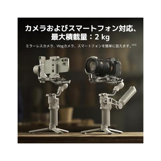 ✅【カメラとスマートフォンに対応】 - 軽量なDJI RS 4 Miniは 最大2kgのペイロードをサポートし ミラーレスカメラやVlogカメラ スマートフォンに対応し [7]クリエイティブなシナリオにシームレスに適応します。