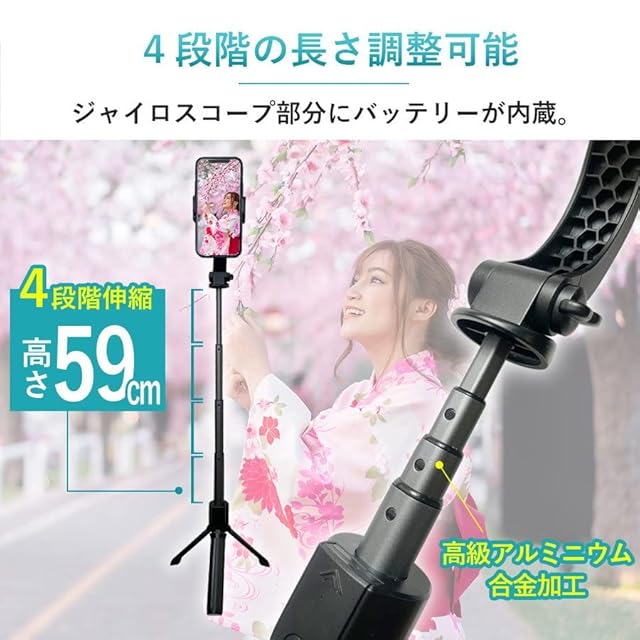 スマホ用スタビライザー 自撮り棒 伸縮 片手持ち 三脚 電動 1軸 水平撮影 垂直撮影 360°回転 自撮り撮影 手振れ補正 電動手ブレ機能を搭載しているので撮影時に生じる左右の手ブレを軽減 お手持ちのスマホが映画級の迫力ある動画に変身します。iPhone android対応