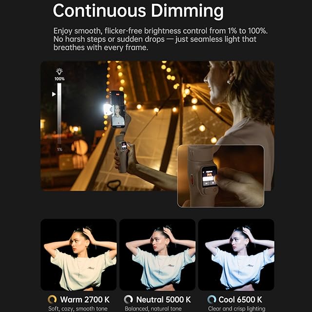 3色フィルライト:1%から100%まで、スムーズでちらつきのない明るさ調整が可能です。急な段差や落下もなく、フレームごとに息づくシームレスな光だけが残ります。