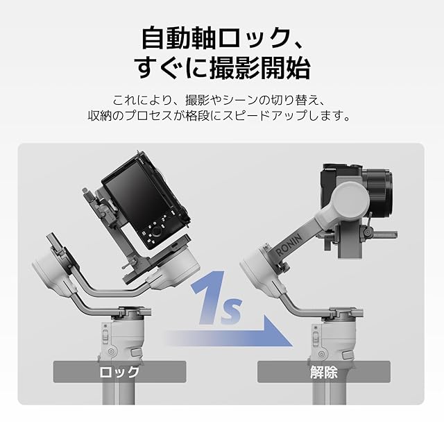 ✅【1秒で準備完了】 - 手動ロックで手間取ることはもうありません! DJIジンバルRS 4 Miniの自動軸ロックでセットアップがさらに速くなります。一瞬の瞬間や素早いシーンの切り替えを完璧にキャプチャします。